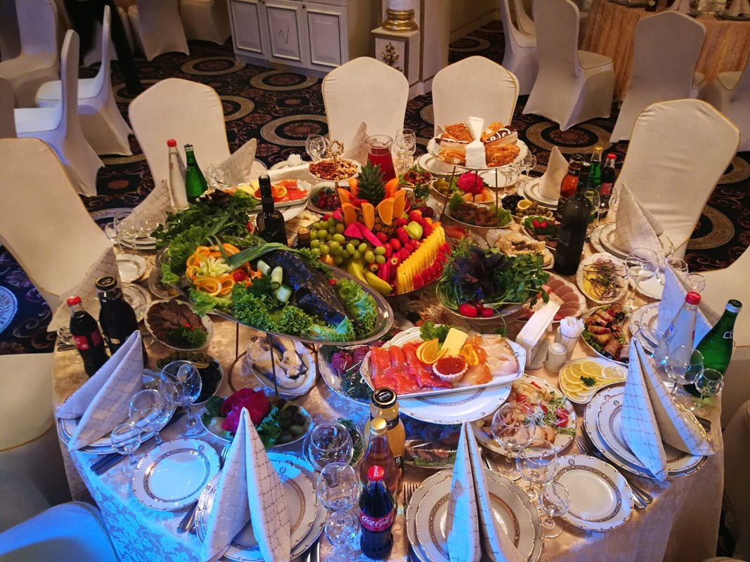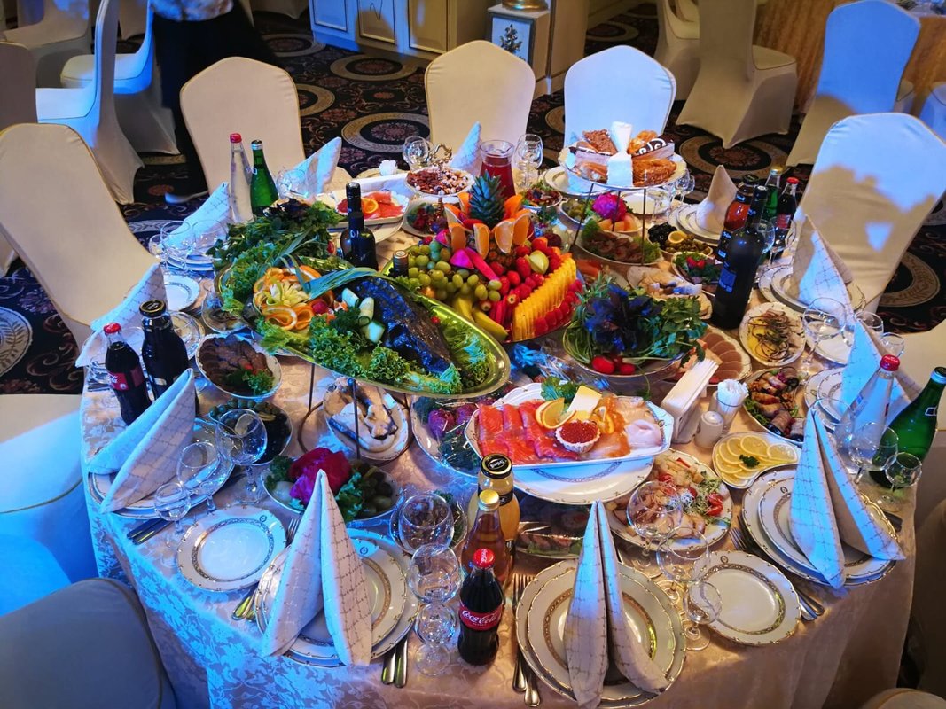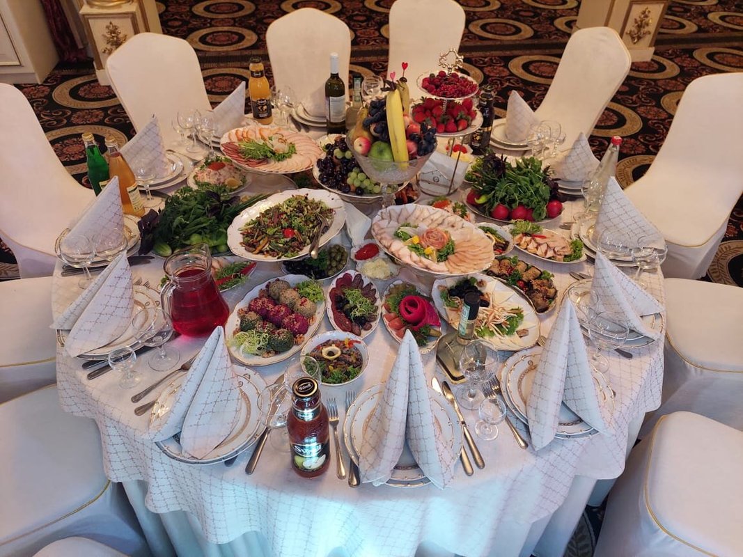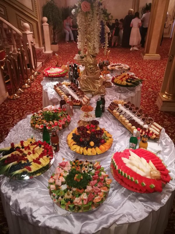 Здравствуйте. Что я могу сказать Вам, друзья?! относительно этого заведения. Я был приглашенным гостем на свадьбе родственника в этом зале. Ни разу в нем не был, хотя и живу рядом. Скажу честно - интерьер мне понравился, хотя снаружи и не скажешь о том, что внутри красиво. Стол мне понравился, всего можно сказать было, понемногу - сидящим за столом людям хватило. Имел в виду холодные закуски. Потом стали приносить горячее одно за другим. И этого хватило, я наелся. Соки и лимонады были вдоволь.Пока ведущий нас всех развлекал, гости ели, и веселились, танцевали, пили. Один маленький минус-наш стол стоял рядом с колонкой, было очень громко.Время пролетело - я и не заметил как наступило 12 ночи. Скажу честно друзья - Зал хороший, кто бы что не говорил, еда мне понравилась, шашлыки реально вкусные, а особенно мне понравился плов, его торжественно вынесли с огнем и музыкой. Буду свадьбу сыну справлять здесь.