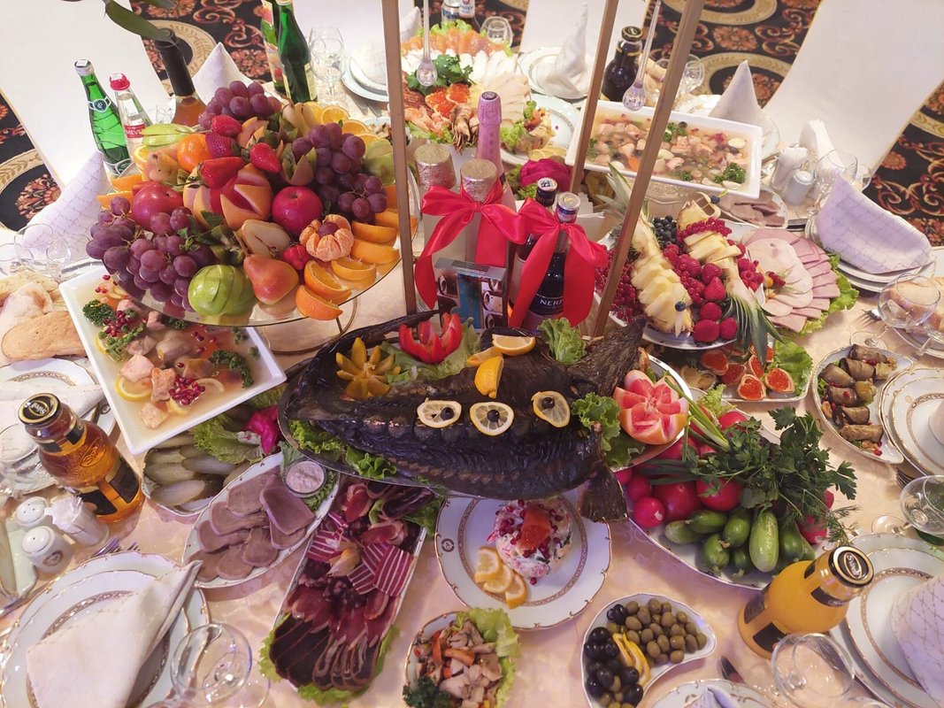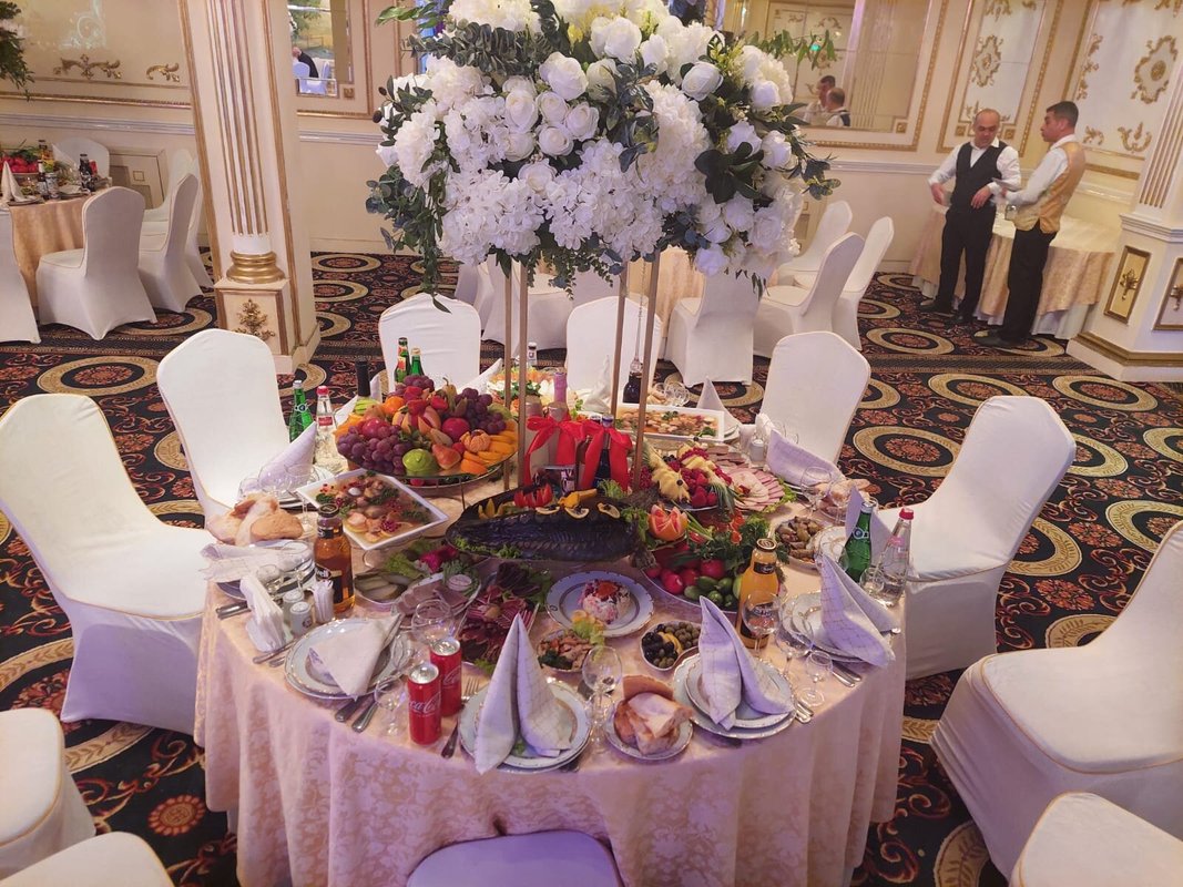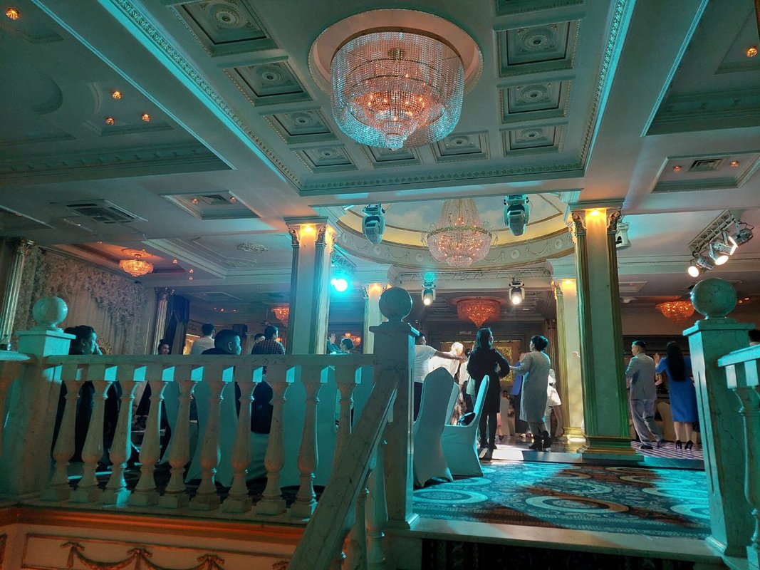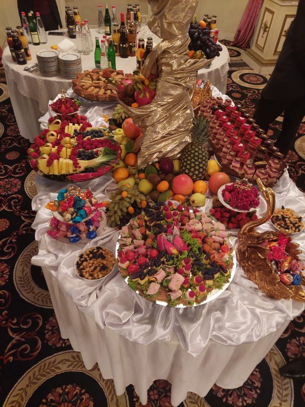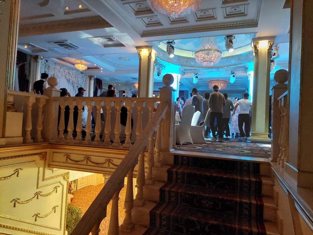 Здравствуйте. Что я могу сказать Вам, друзья?! относительно этого заведения. Я был приглашенным гостем на свадьбе родственника в этом зале. Ни разу в нем не был, хотя и живу рядом. Скажу честно - интерьер мне понравился, хотя снаружи и не скажешь о том, что внутри красиво. Стол мне понравился, всего можно сказать было, понемногу - сидящим за столом людям хватило. Имел в виду холодные закуски. Потом стали приносить горячее одно за другим. И этого хватило, я наелся. Соки и лимонады были вдоволь.Пока ведущий нас всех развлекал, гости ели, и веселились, танцевали, пили. Один маленький минус-наш стол стоял рядом с колонкой, было очень громко.Время пролетело - я и не заметил как наступило 12 ночи. Скажу честно друзья - Зал хороший, кто бы что не говорил, еда мне понравилась, шашлыки реально вкусные, а особенно мне понравился плов, его торжественно вынесли с огнем и музыкой. Буду свадьбу сыну справлять здесь.