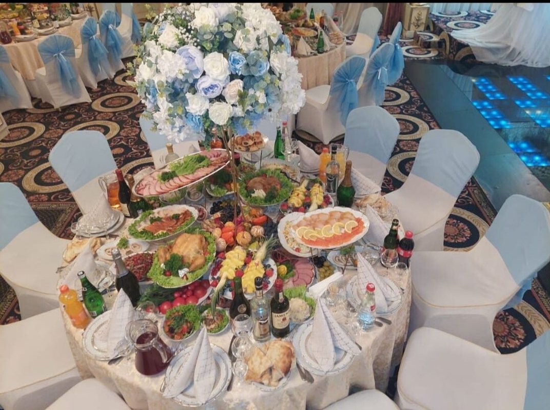 Здравствуйте. Что я могу сказать Вам, друзья?! относительно этого заведения. Я был приглашенным гостем на свадьбе родственника в этом зале. Ни разу в нем не был, хотя и живу рядом. Скажу честно - интерьер мне понравился, хотя снаружи и не скажешь о том, что внутри красиво. Стол мне понравился, всего можно сказать было, понемногу - сидящим за столом людям хватило. Имел в виду холодные закуски. Потом стали приносить горячее одно за другим. И этого хватило, я наелся. Соки и лимонады были вдоволь.Пока ведущий нас всех развлекал, гости ели, и веселились, танцевали, пили. Один маленький минус-наш стол стоял рядом с колонкой, было очень громко.Время пролетело - я и не заметил как наступило 12 ночи. Скажу честно друзья - Зал хороший, кто бы что не говорил, еда мне понравилась, шашлыки реально вкусные, а особенно мне понравился плов, его торжественно вынесли с огнем и музыкой. Буду свадьбу сыну справлять здесь.
